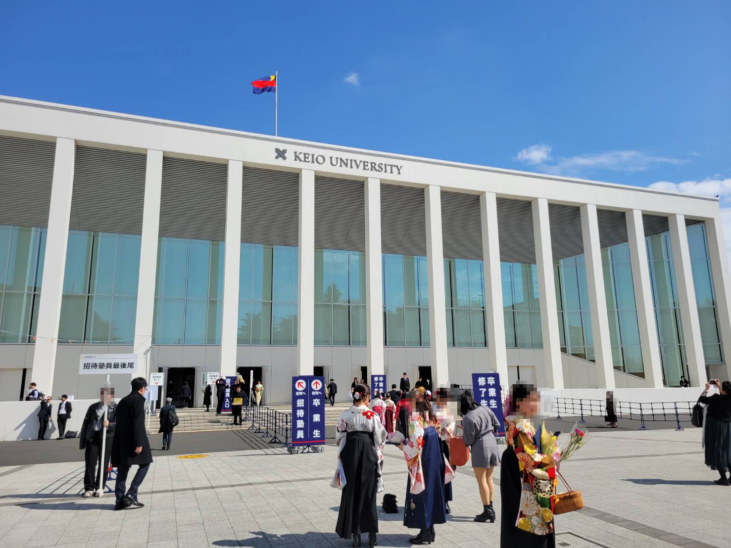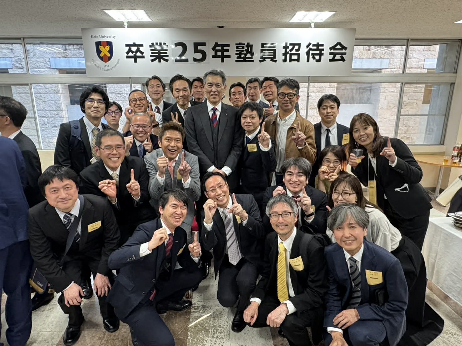 2026年3月23日(月)、私たち2001年三田会は卒業25年の節目を迎え、慶應義塾主催の卒業式および塾員招待会に参列いたしました。日吉キャンパスに集結したのは事前登録した約430名の同期。午前中の雨模様から一転、お昼過ぎには雨も上がり、日吉駅周辺は晴れ着姿の卒業生やご家族の笑顔で溢れていました。